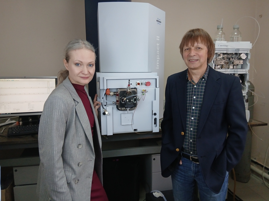 Рисунок 1. Ирина Тарасова и Михаил Горшков (руководитель проекта, поддержанного грантом РНФ, заведующий лабораторией, руководитель обособленного подразделения ИНЭПХФ ФИЦ ХФ РАН) в лаборатории. Источник: Иван Федоров, Лейла Гарибова / ФИЦ ХФ РАН.