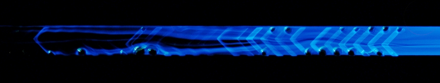 Свечение смеси люминола и хлорита натрия на микрофлюидном чипе. Источник: Глеб Симоненко.