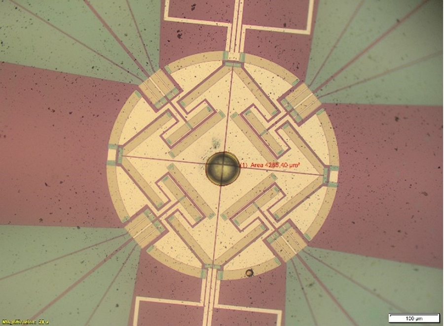 Изображение чип-сенсора, использованного для исследования новых молекул. Источник: Руслан Нагриманов / Казанский (Приволжский) федеральный университет.